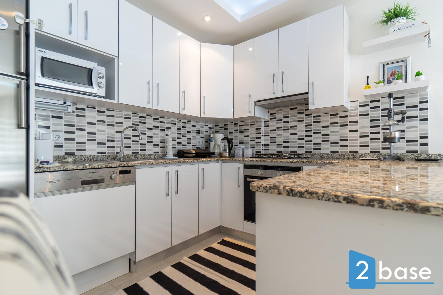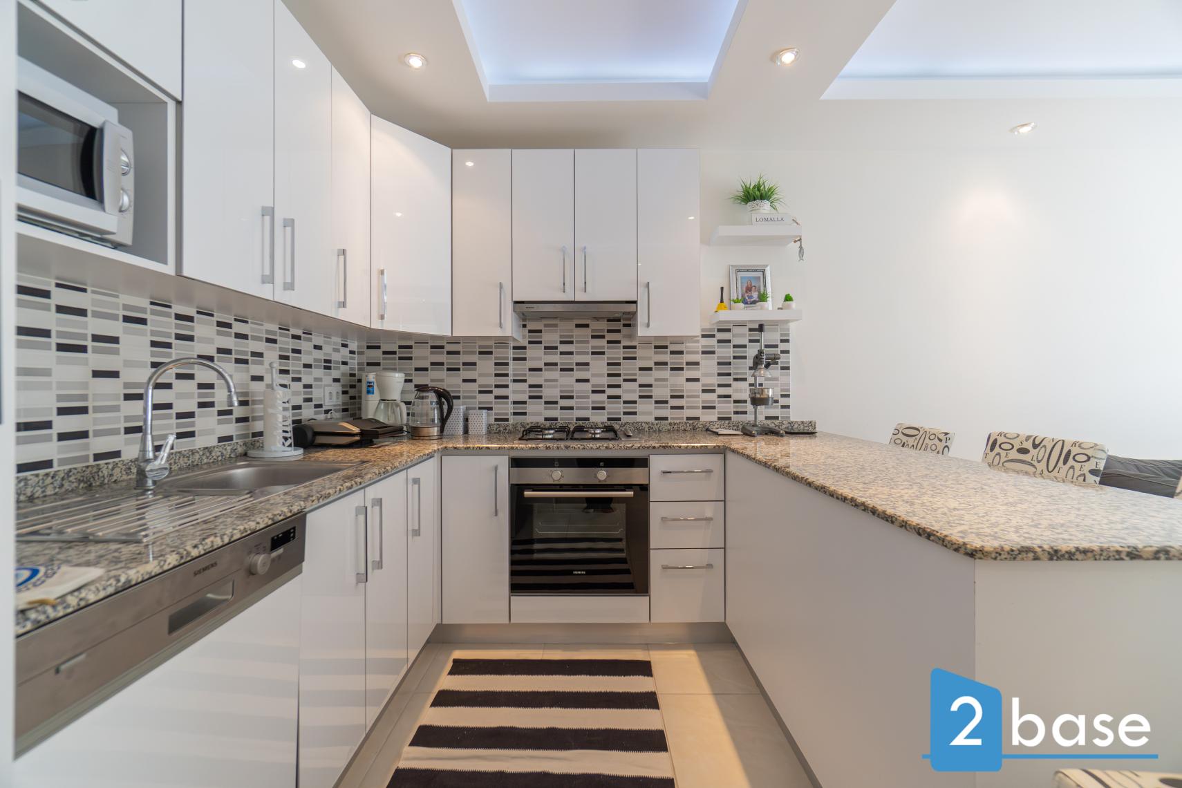 Air conditioning for heating or cooling both living room and bedrooms. Electrical water heating system. Tempting bathroom with ceiling light and shower. American kitchen with bar counter.