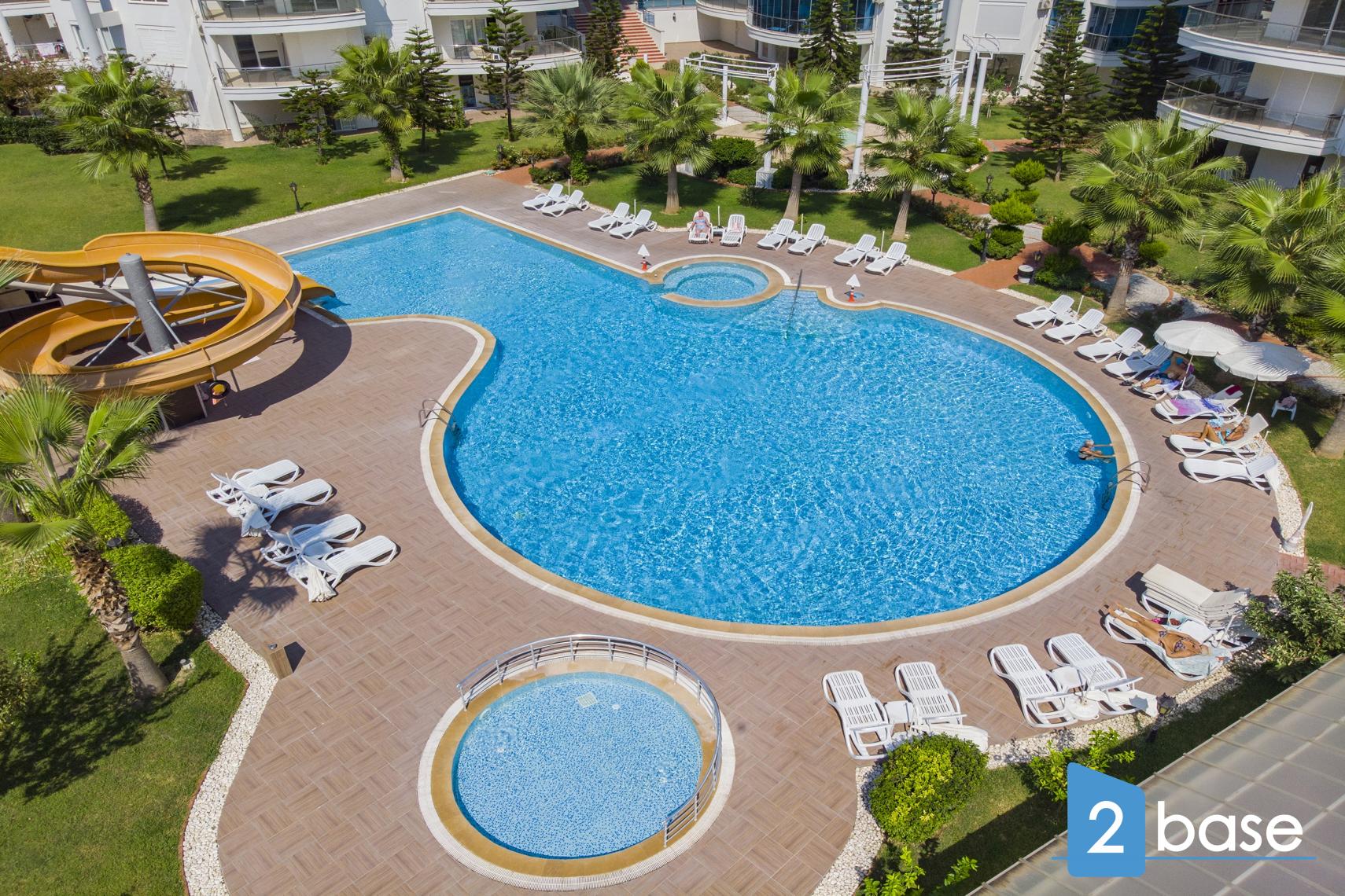 Situated next to ALANYUM shopping center. The spacious garden offers activities for all ages and indoor pool makes it possible to swim all year round