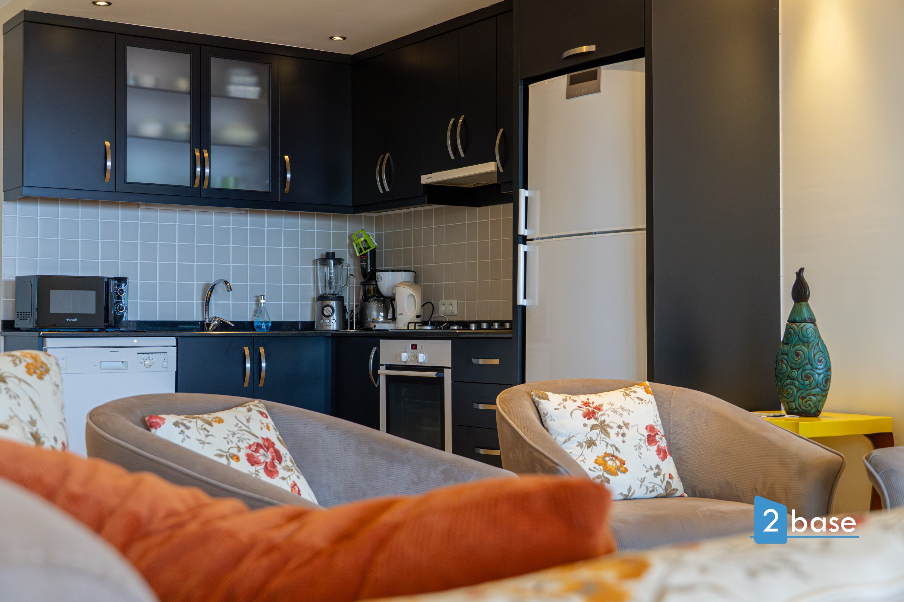 Air conditioning for heating or cooling both living room and bedrooms. Jacuzzi in the bathroom. American kitchen with oven, hob, refrigerator and dishwasher. Holiday home with inviting balconies for the warm summer nights.
