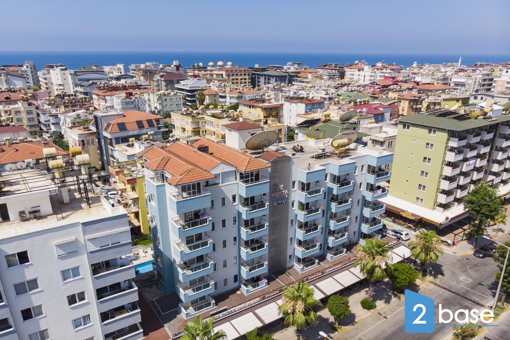 Vesta Kleopatra es un moderno complejo de apartamentos de cinco plantas en el centro de Alanya, con piscina comunitaria, gimnasio en la azotea, sauna y zona de juegos. Ubicado a dos minutos de la playa y del distrito comercial, con vistas a las montañas y al Mediterráneo.