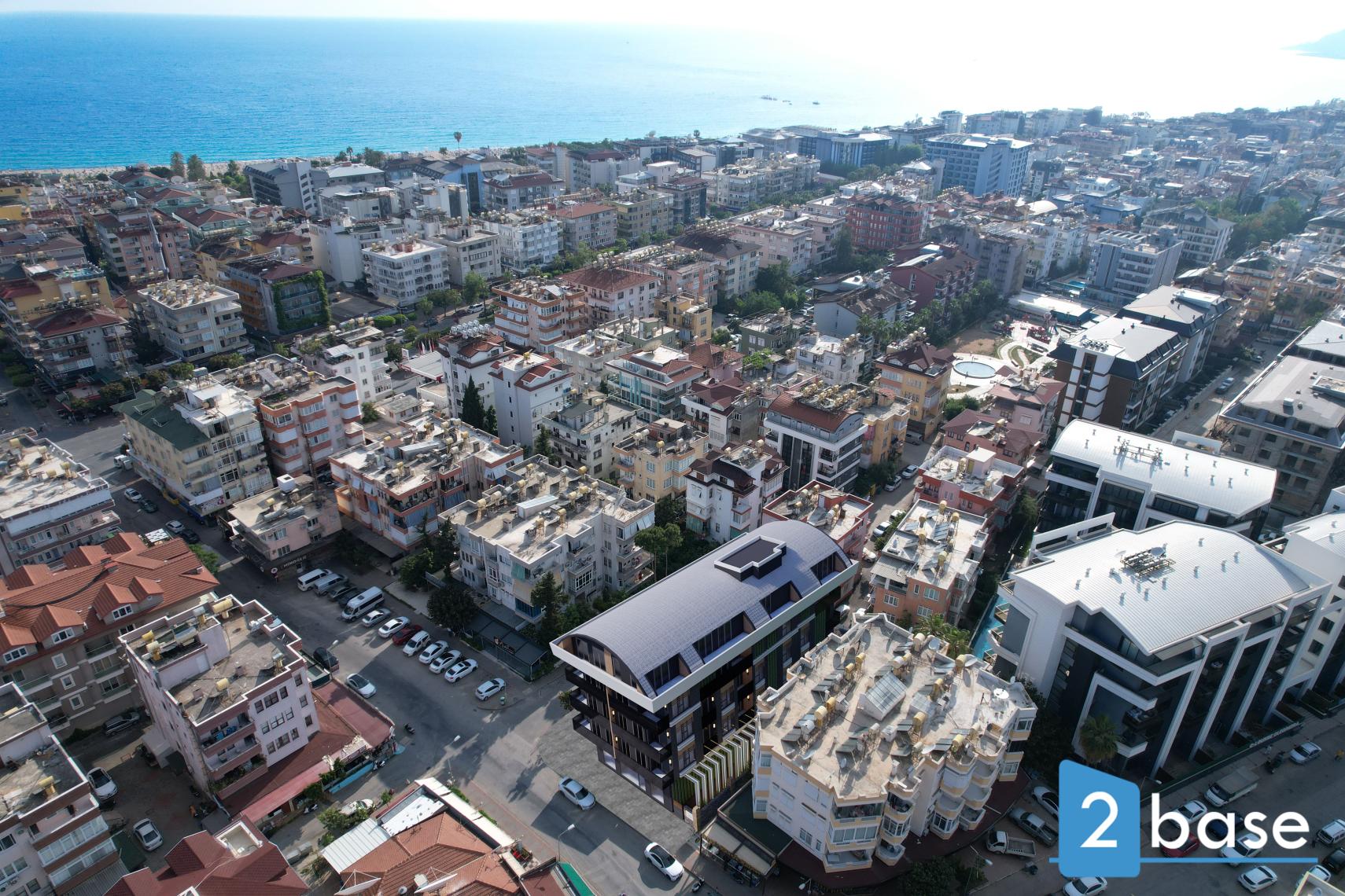 tontilla Alanyan keskustassa. Nelikerroksinen rakennus yhdistää nykyaikaisen arkkitehtuurin käytännöllisiin