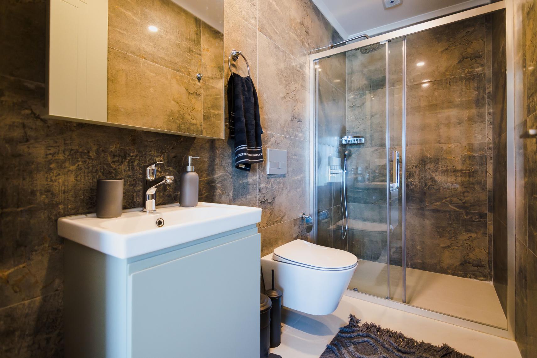 სასიამოვნო დასასვენებელი სახლი ცენტრთან და პლაჟთან ახლოს.. სასიამოვნო საცურაო აუზი წყლის სასრიალოთი.. სპორტული და ჯანმრთელობის ობიექტები. თურქული აბანო საზოგადოებრივი გამოყენებისთვის