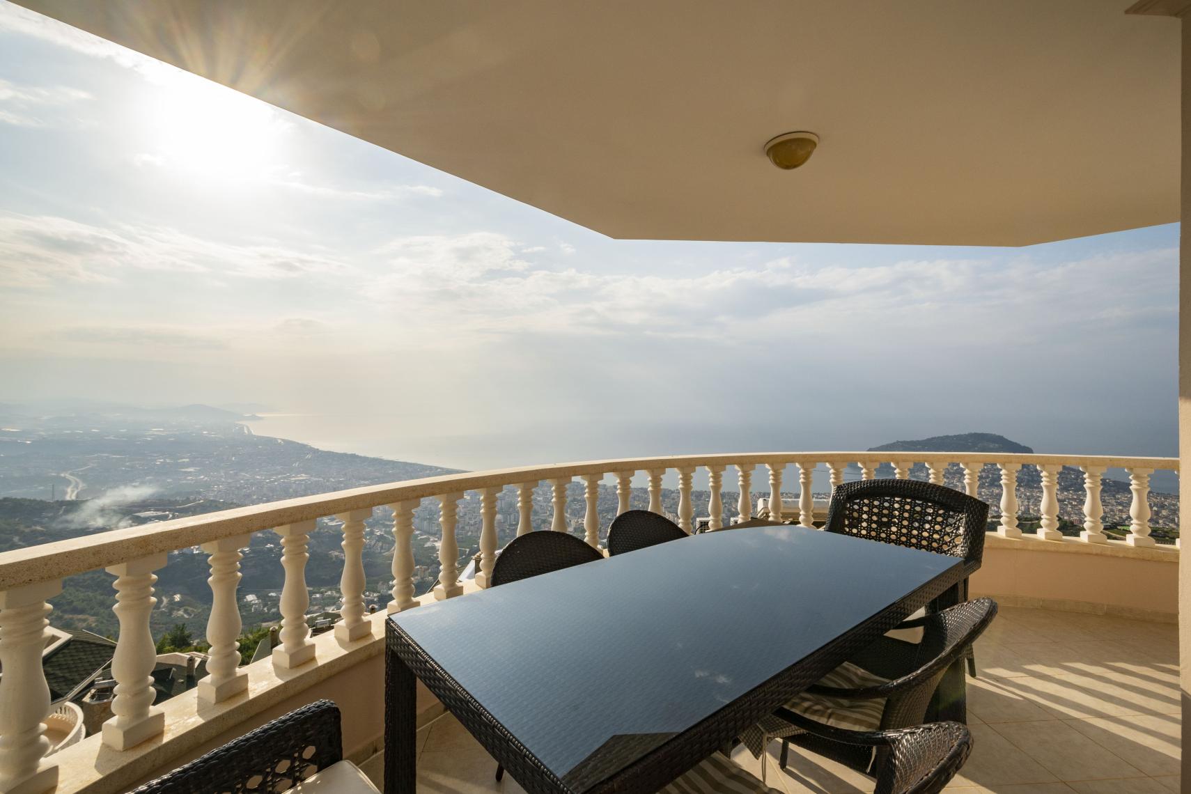 Ótrúlegt útsýni yfir hafið og höfnina í Alanya.. Frábært útsýni yfir fallegu Taurusfjöllin..