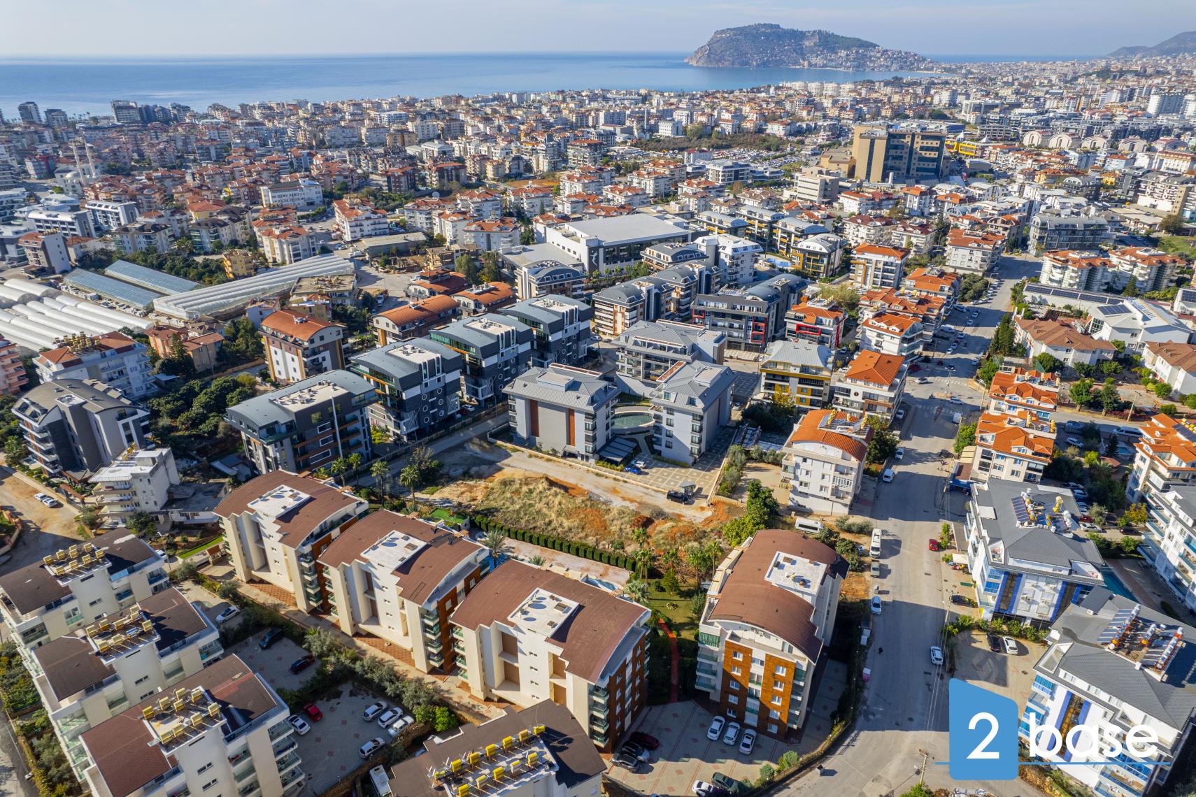 5.353 ferkílómetra svæði í Oba-hverfinu í Alanya. Komplexið samanstendur af fjórum fjögurra hæða húsnæðishúsum