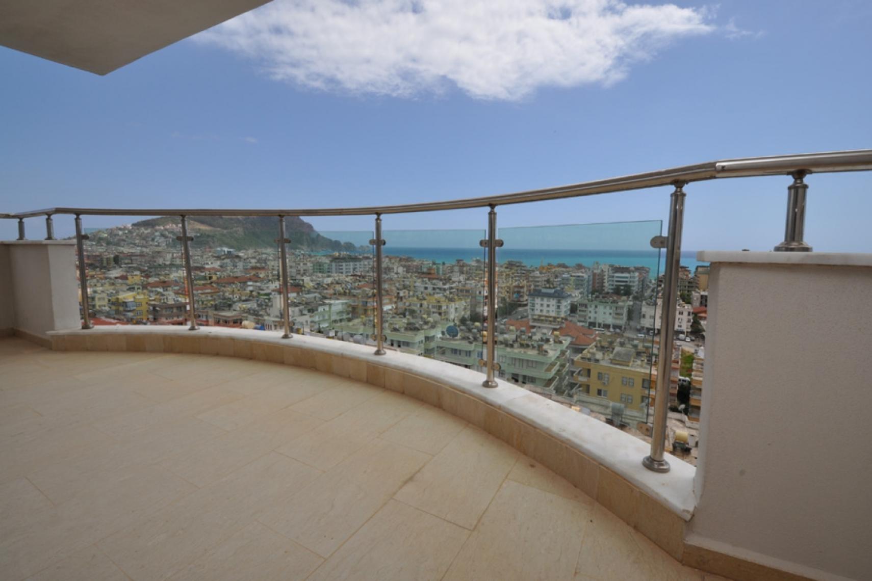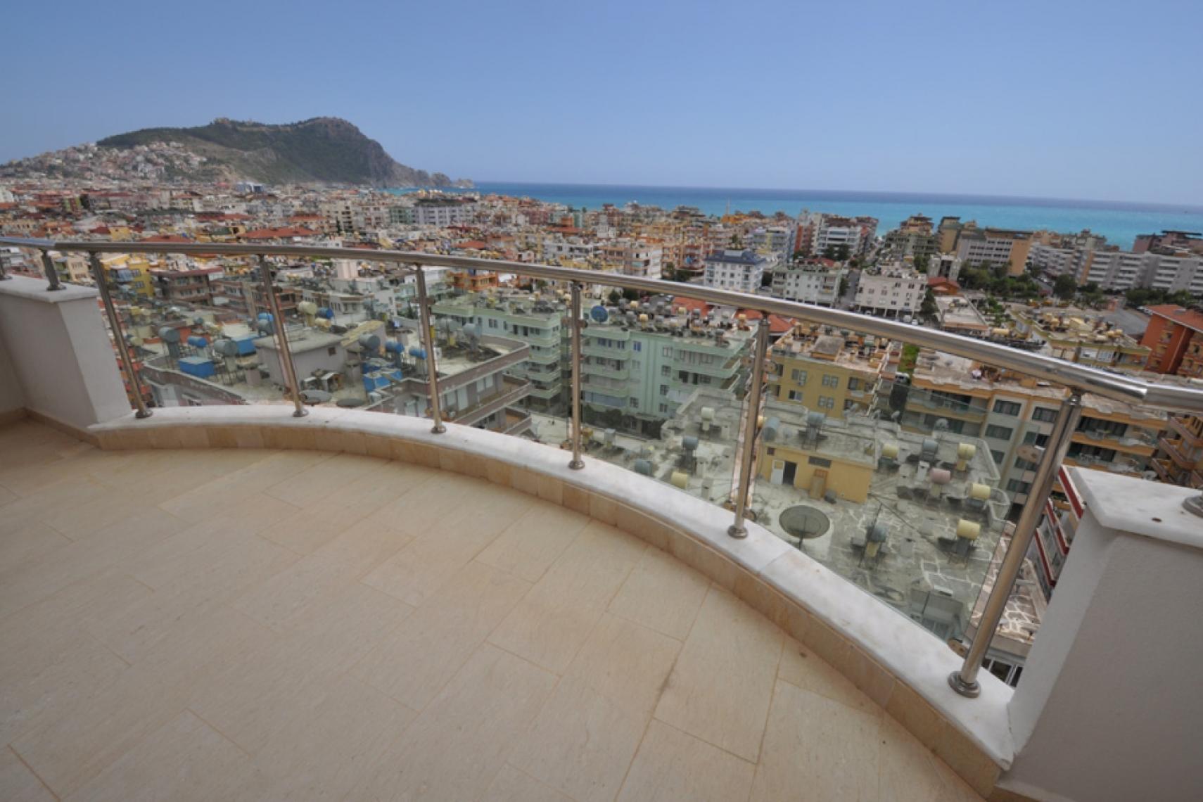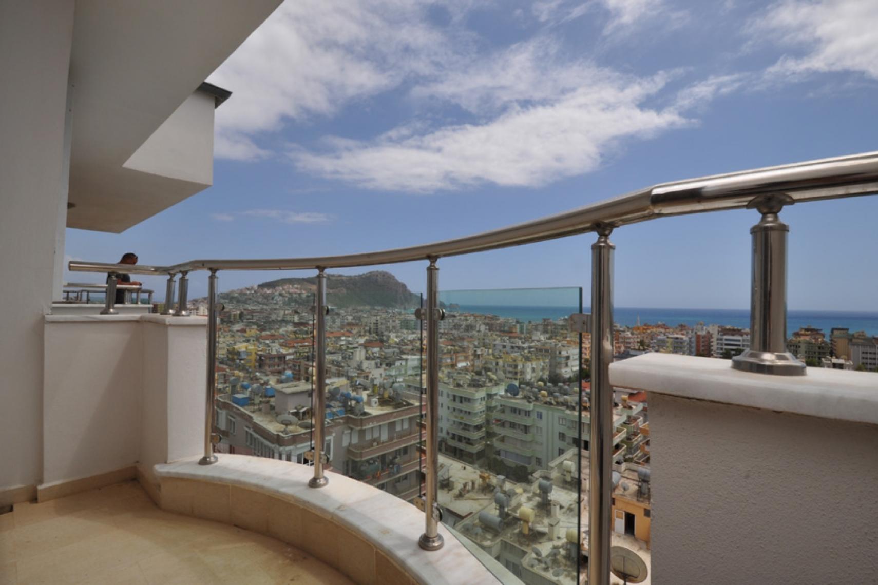 クレオパトラビーチの壮大な景色. バルコニーからの息をのむような城の眺め.