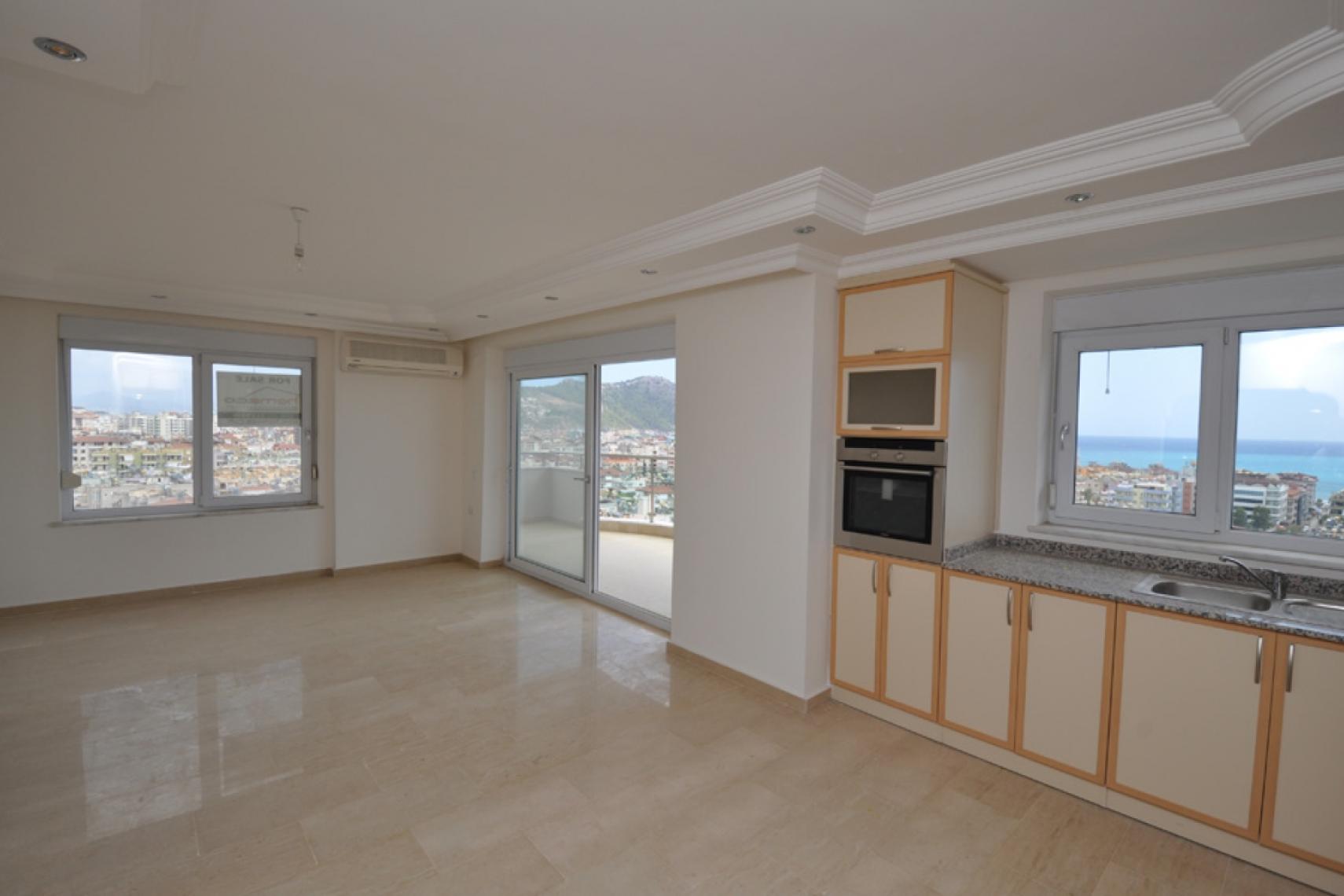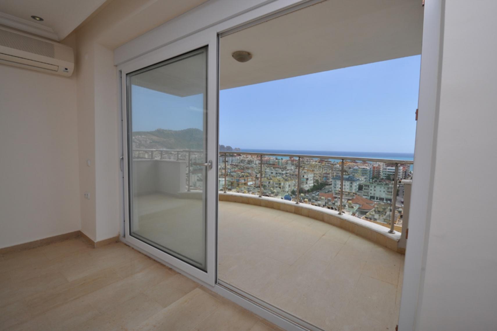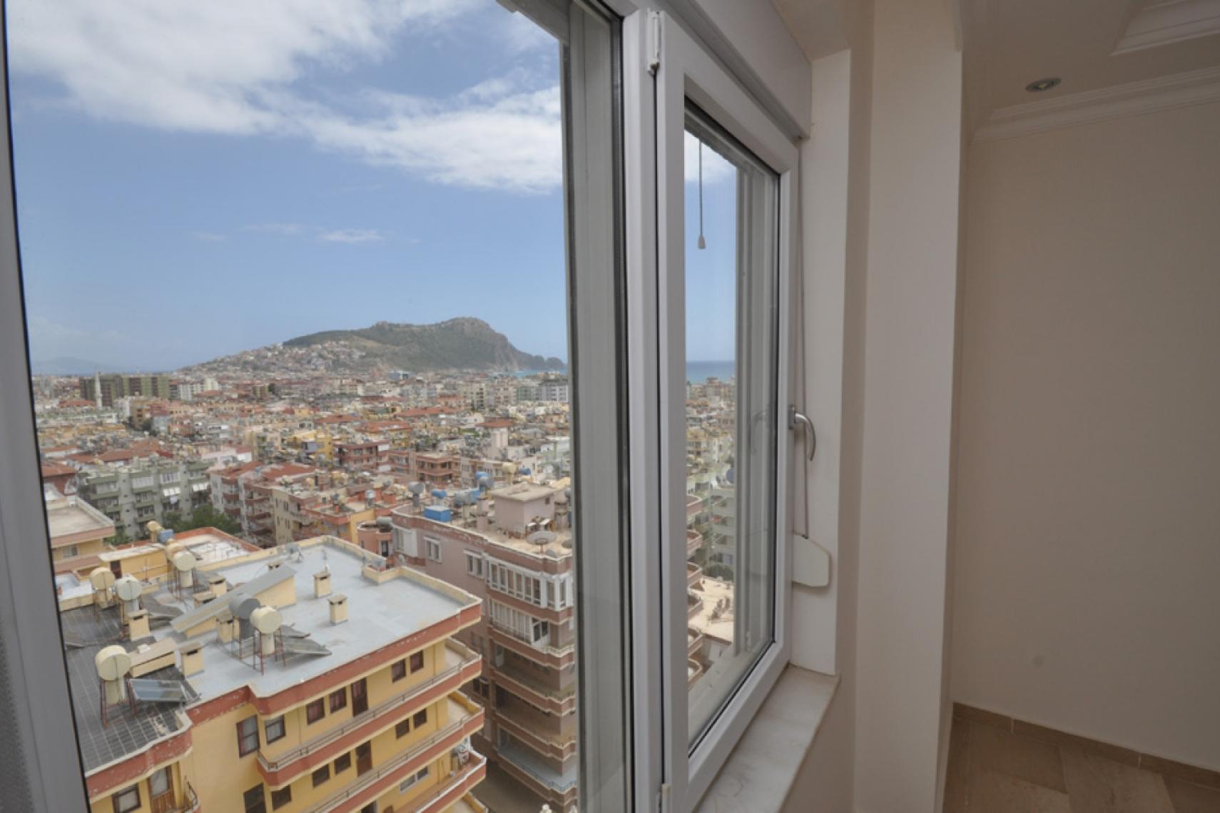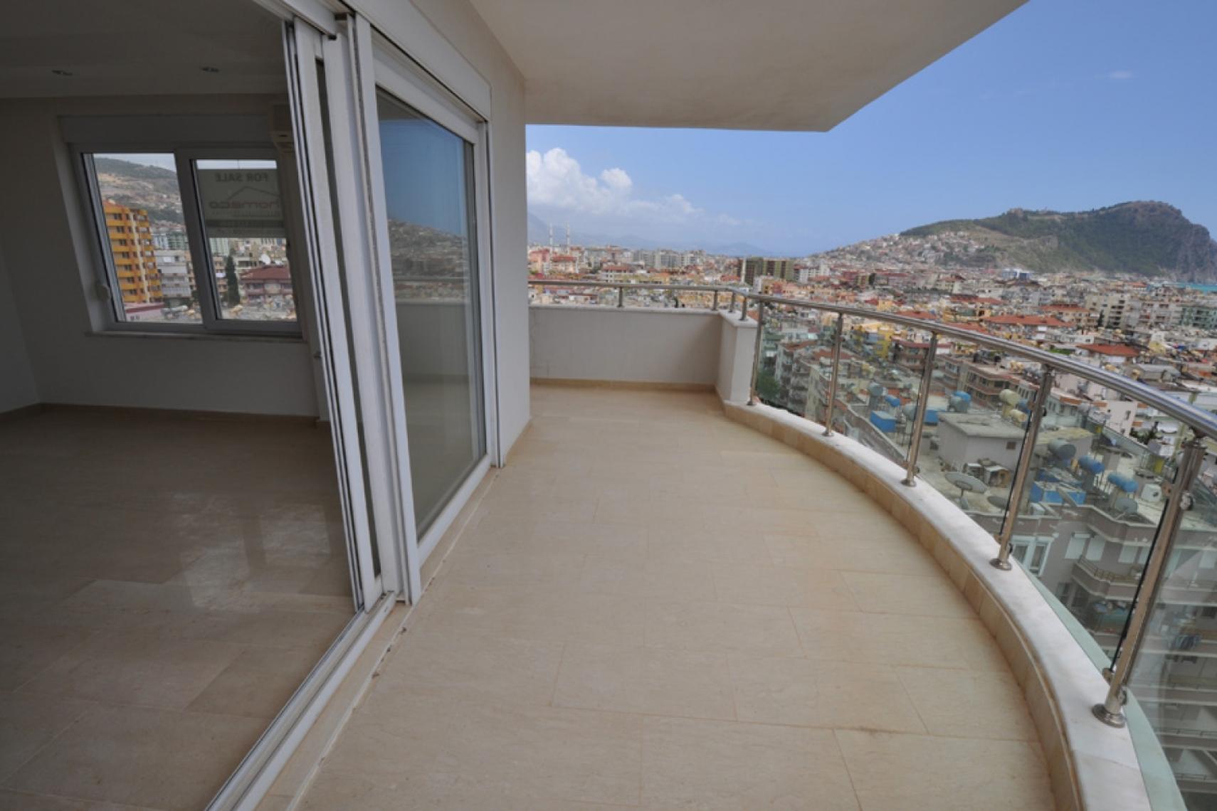 クレオパトラビーチの壮大な景色. バルコニーからの息をのむような城の眺め.