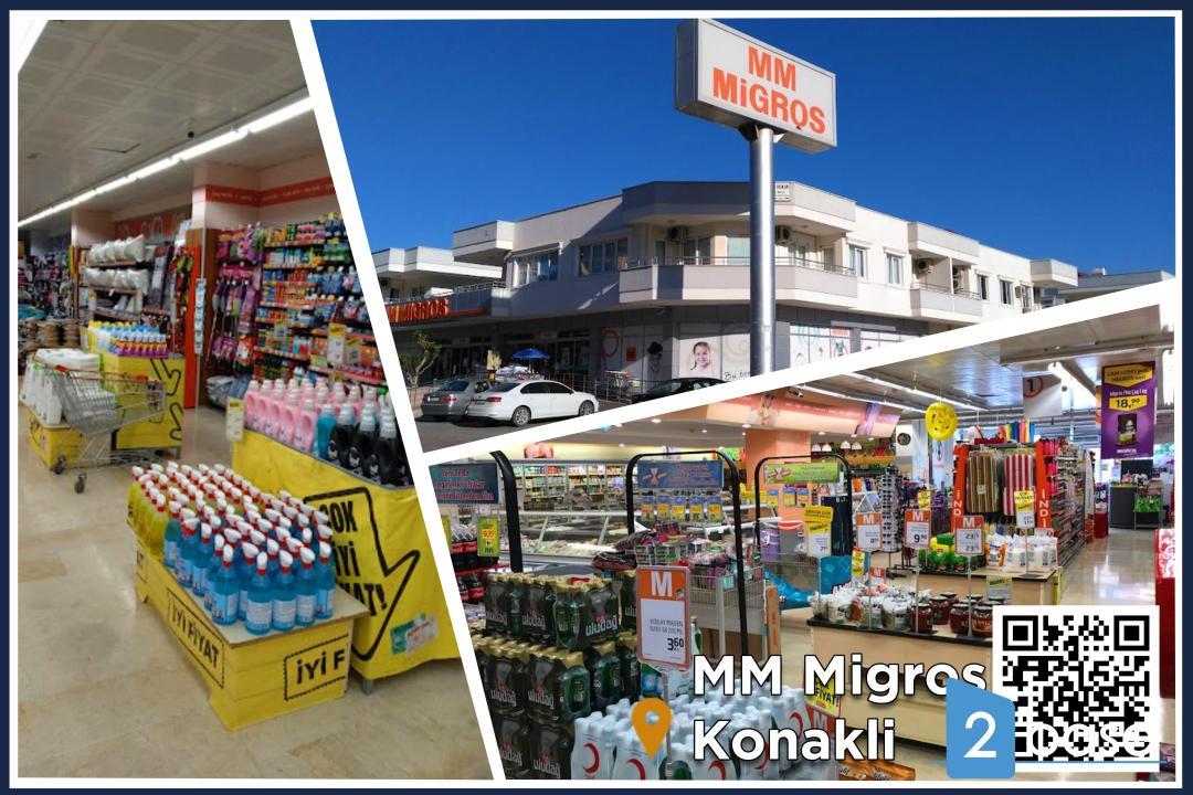 Конаклы - өте танымал аймақ, сондықтан онда көптеген қасапшылар, наубайханалар және құрал-жабдықтар дүкендері бар. Түркияда жиі кездесетін шағын азық-түлік дүкендерімен қатар. Жергілікті жергілікті киім дүкендері бар, ал шағын сауда орталығында танымал киім дүкендері бар.Сауда орталығы жағалаудағы негізгі тас жолдың жанында орналасқан және көптеген жергілікті тұрғындар демалыс күндерінің бір бөлігін өткізетін орын. Ашық аспан астындағы базар да жақын жерде орналасқан.