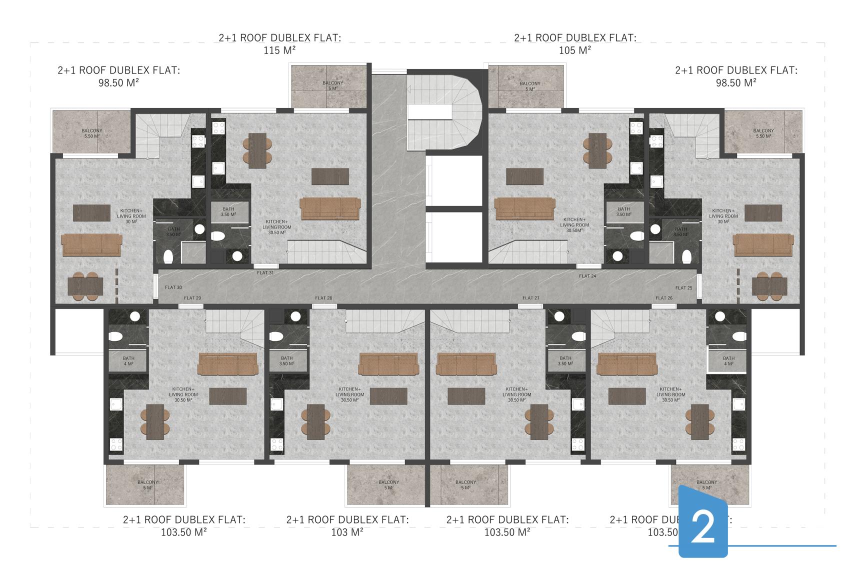 Өлшемі 47 - 115 m²