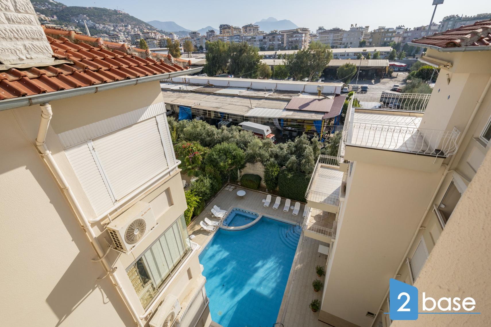 Kare Residence – 2100 kv. m butų kompleksas Alanyjos centre su baseinu, vaikų baseinu, stogų terasa ir bendrais sodais. Pėsčiomis iki parduotuvių – 2 minutės, iki paplūdimio – 10 minučių.