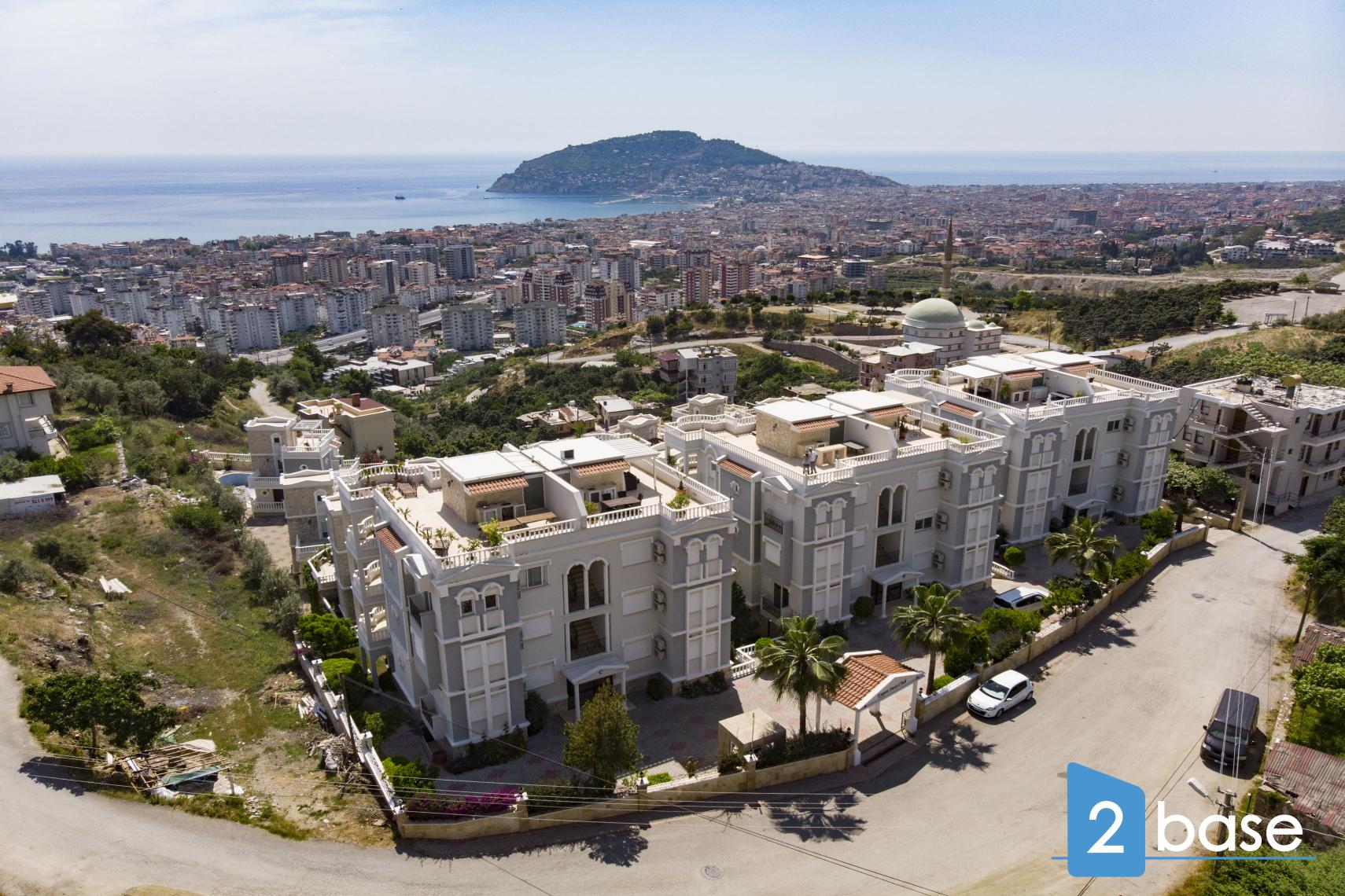 harmonizuju sa mediteranskom okolinom, dok krovne terase pružaju pogled na grad Alanju i obalu.