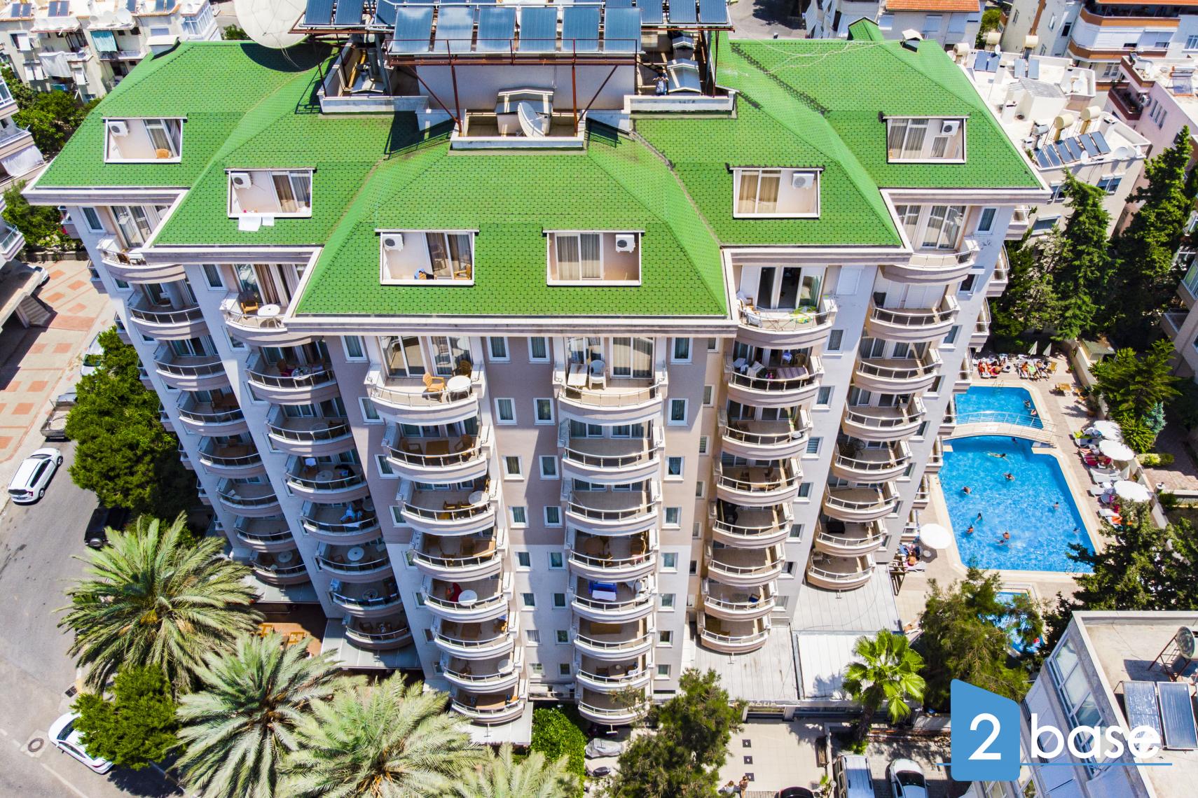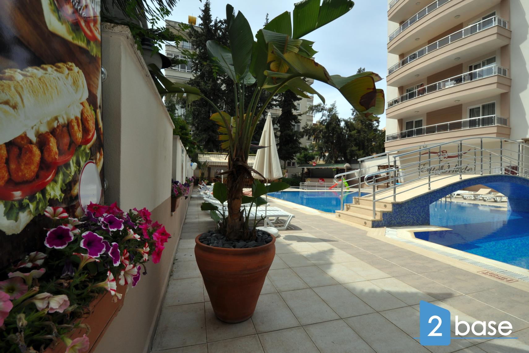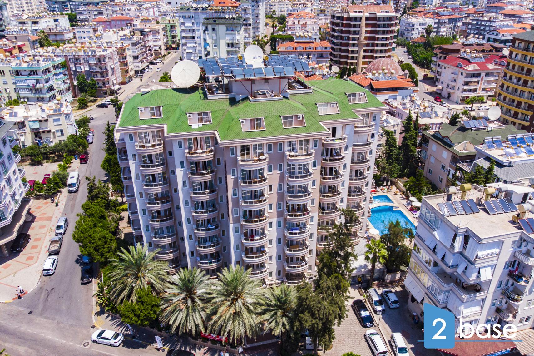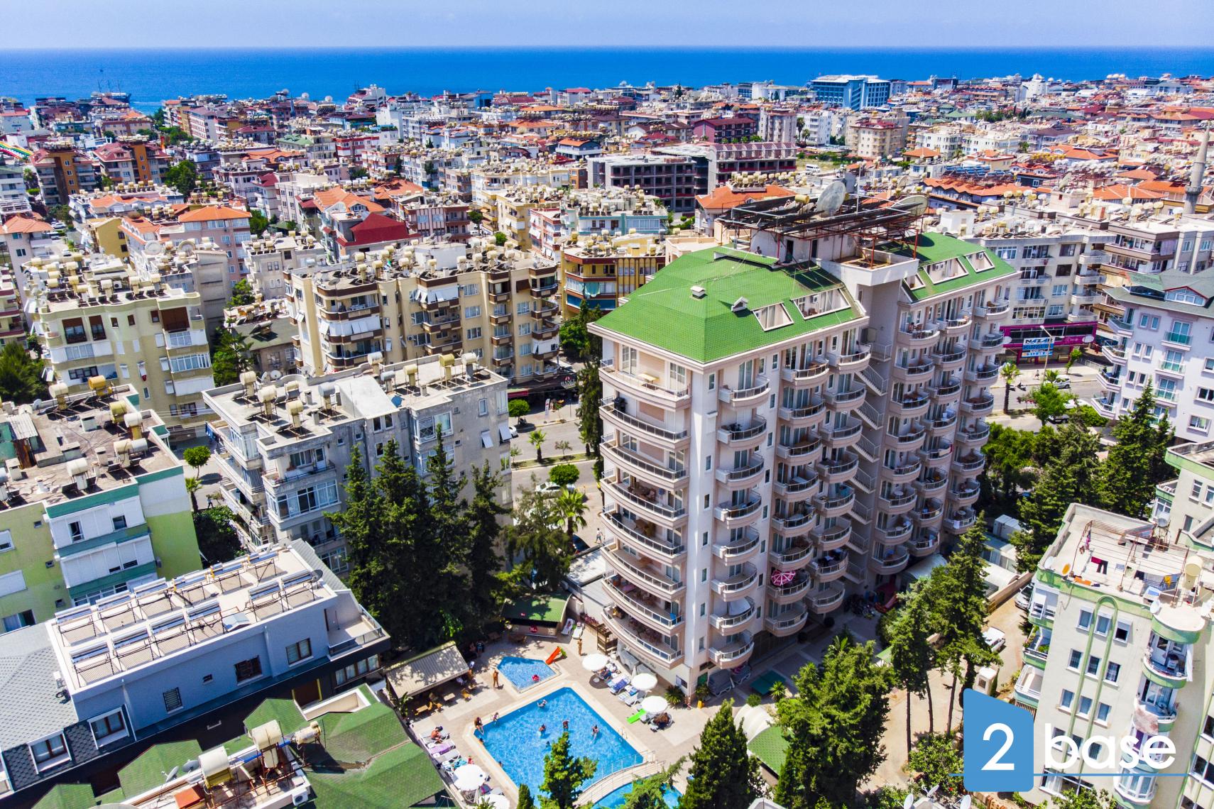 centrala Alanya, bestående av en enda nio våningar hög byggnad. Anläggningen erbjuder gemensamma faciliteter som