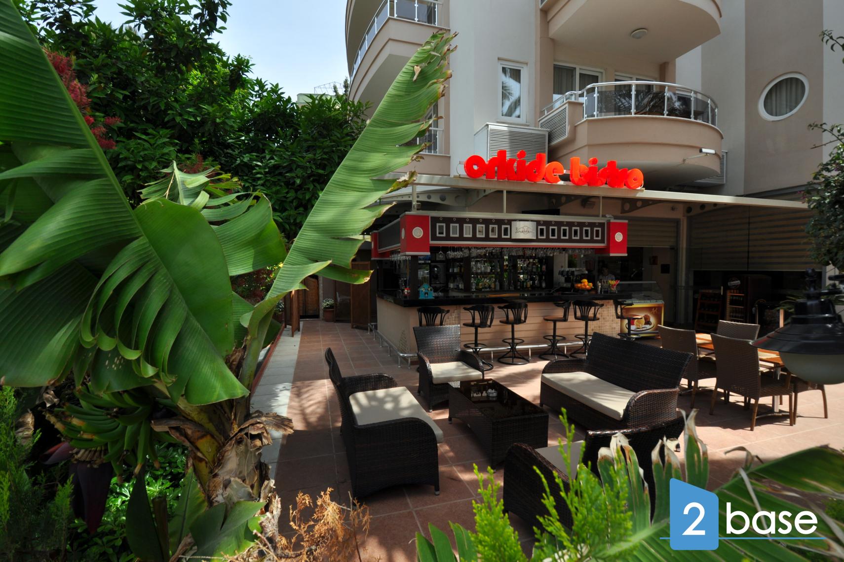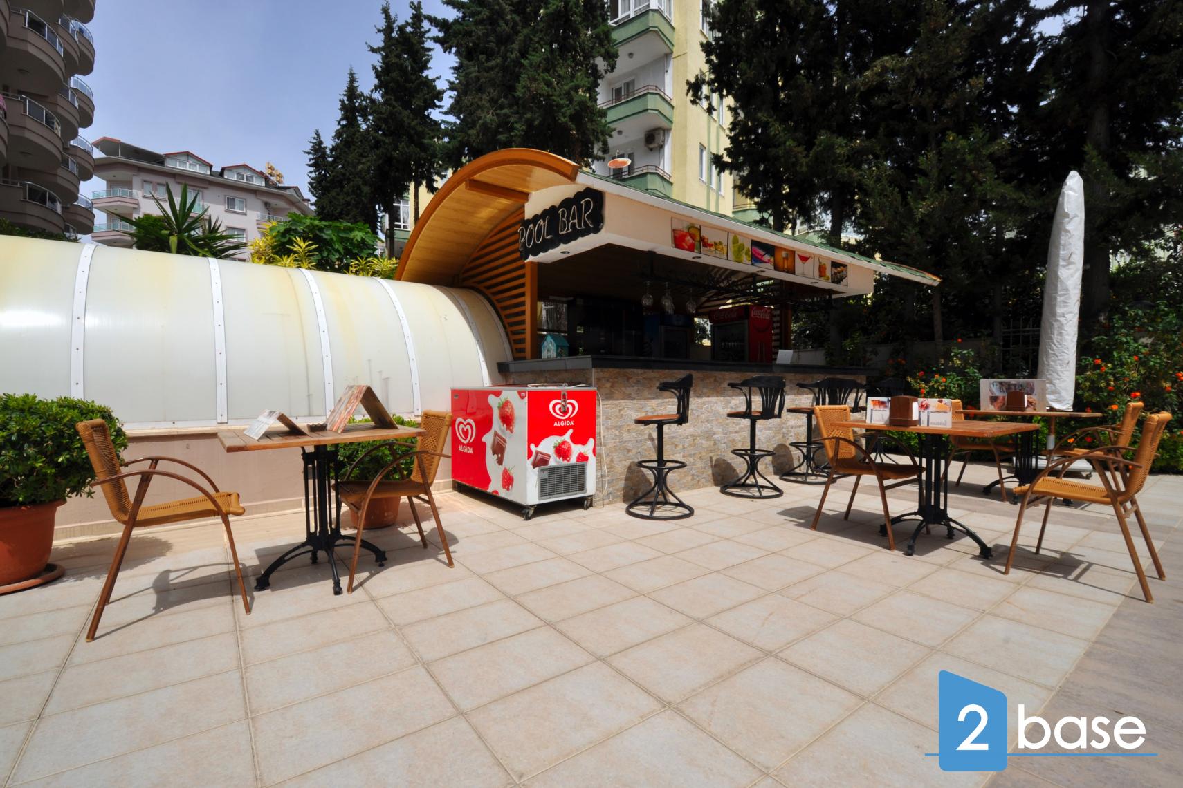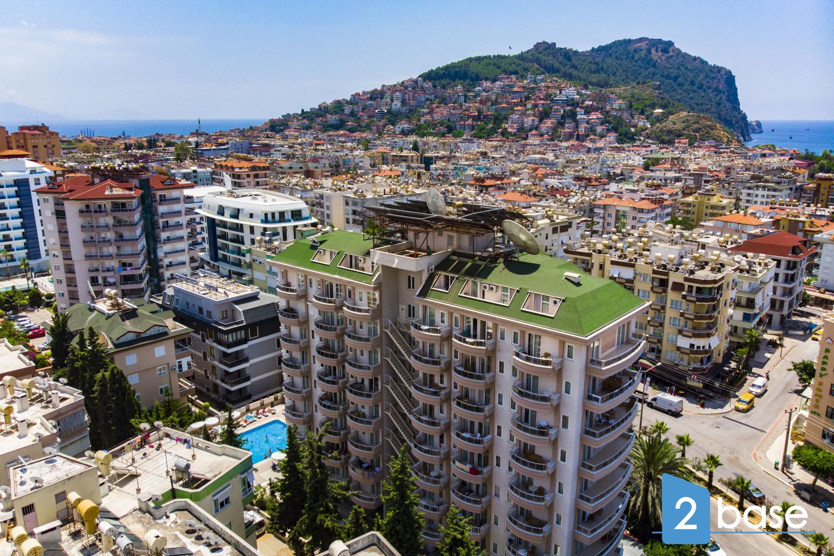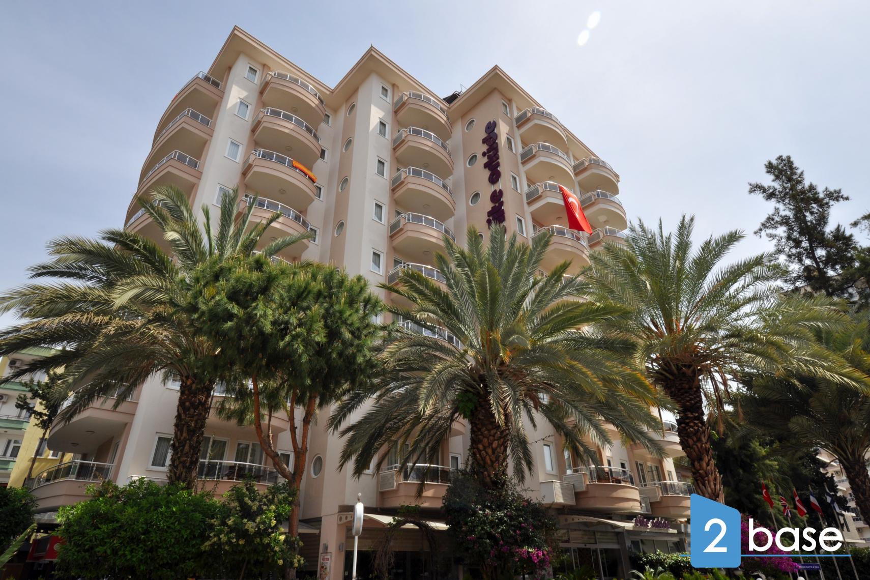 centrala Alanya, bestående av en enda nio våningar hög byggnad. Anläggningen erbjuder gemensamma faciliteter som