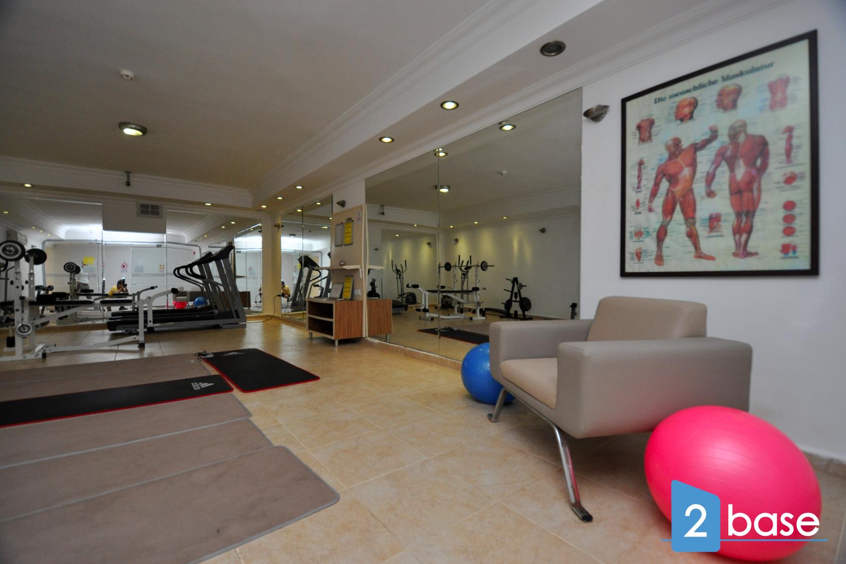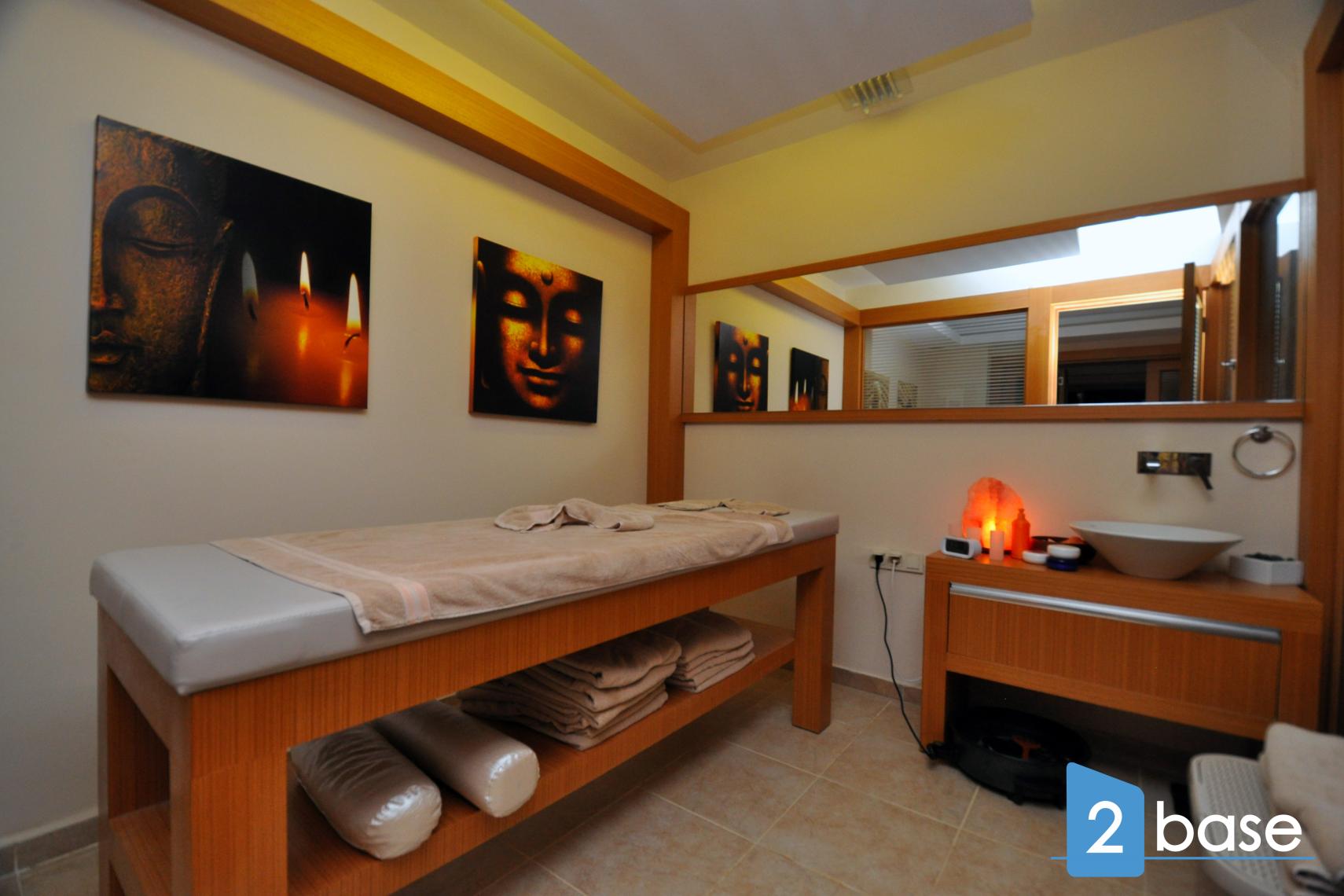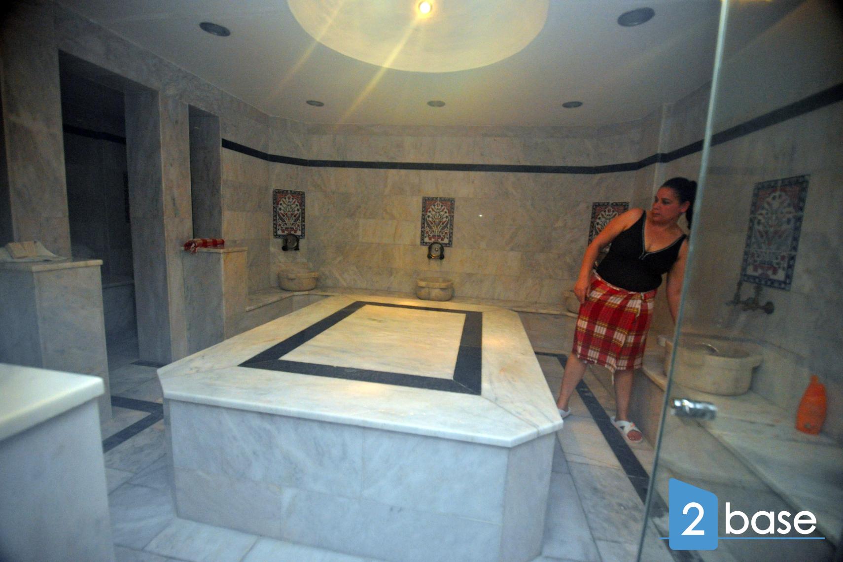 Komplexet har ett välutrustat gym, ett turkiskt bad med marmorklädda interiörer och en bastu i trä. I