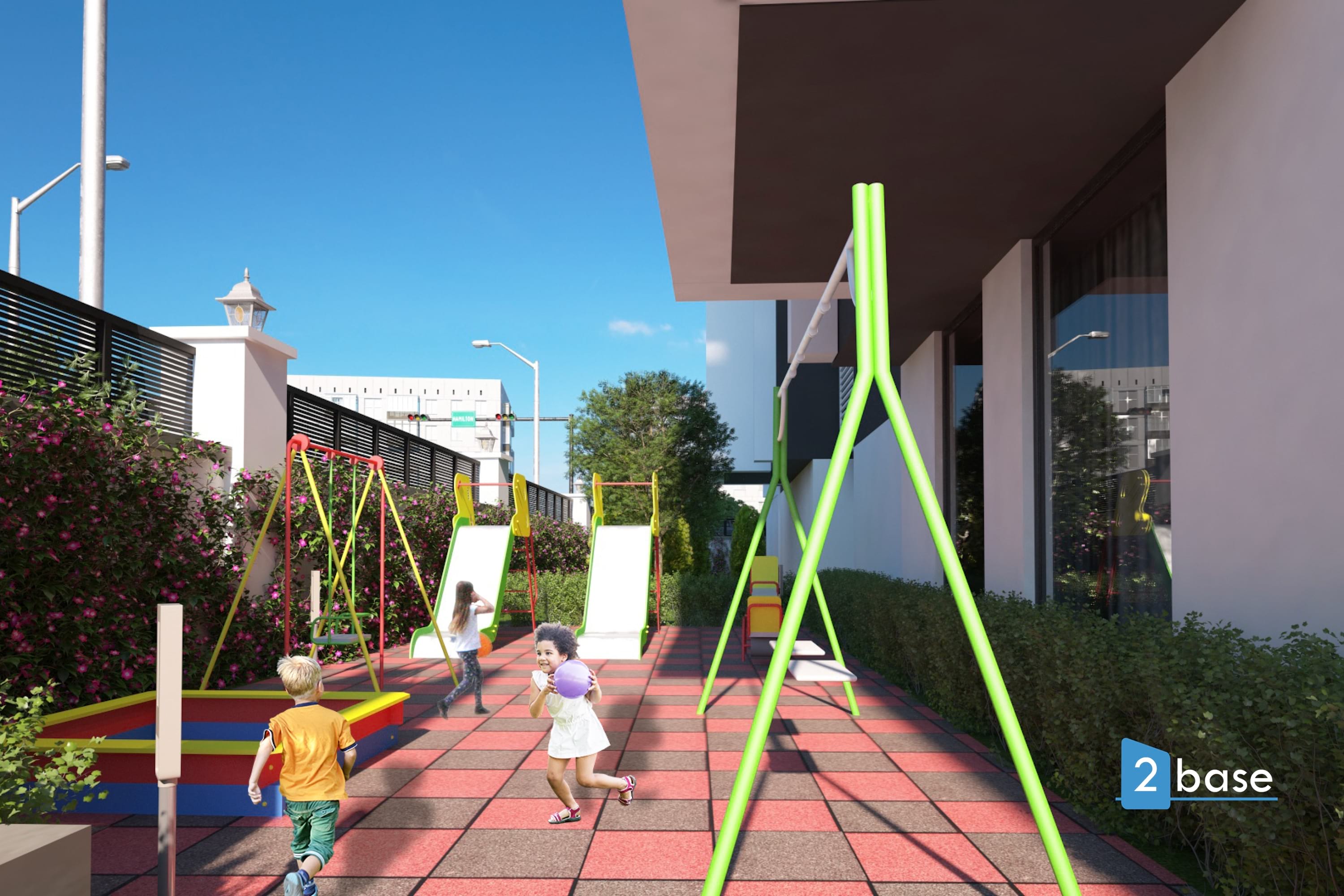 Gemensamma områden inklusive lekplats samt bilparkering. Bostadskomplex med 24-timmars vaktservice. Utrymmen för sport och motion. Turkiskt bad för gemensamt bruk