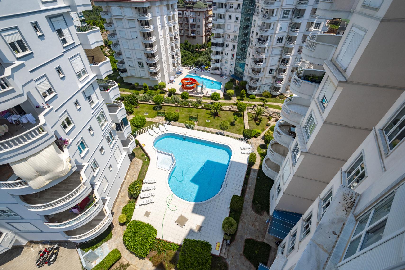 Čudovit prostor ob bazenu.. Zelo lep vrt s cvetjem in sadnim drevjem.. Hišnik za kompleks. Dvigalo v stavbi