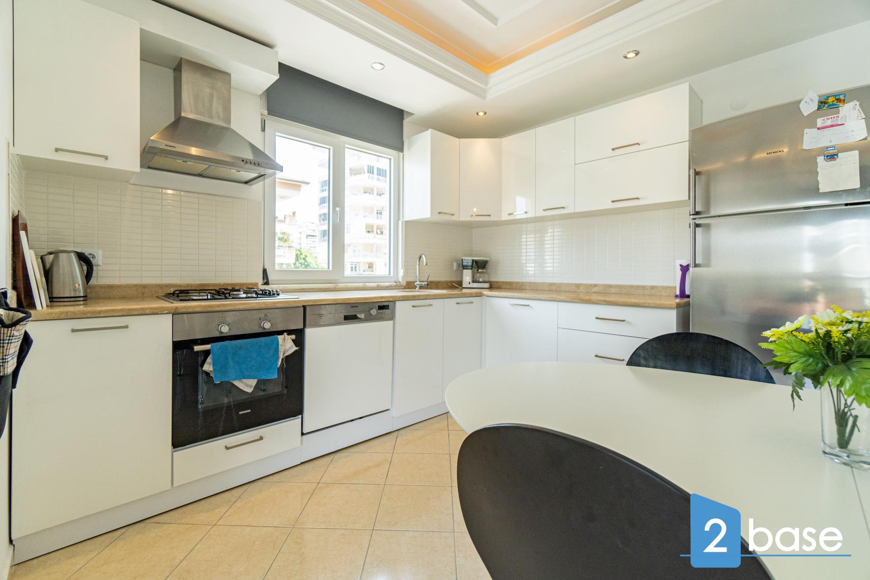 Oturma odasında ve yatak odalarında klima. Huzur verici ve rahatlatıcı mobilyalı bir daire, hemen taşınılabilinir. kullanışlı balkonlarla Akdeniz akşamları için mükemmel. Popüler bir rezidans dairesi, mutfağı açık renkte.